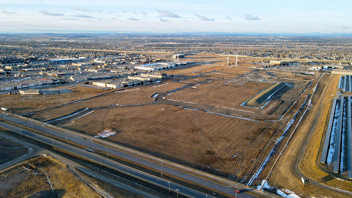 Because the existing area hadn’t been touched for several years, 91,000 cubic metres of topsoil was removed to clear and level the site. Once this work was completed, two dry ponds were created at the west end of the site to manage runoff and protect the surrounding environment.