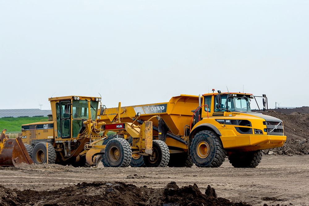 A grader and bulldozer on site in September 2025
