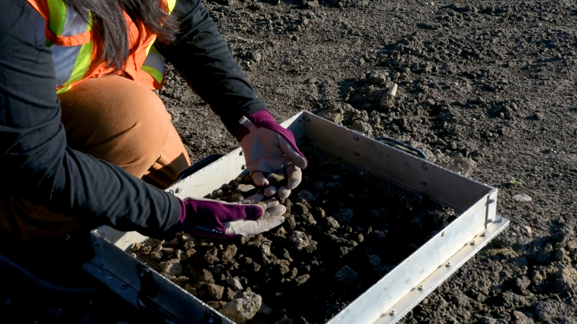As part of the monitoring, soil is sifted for possible cultural materials that could be present on site. This could include projectile points, tipi rings, hearths and fire broken rock.