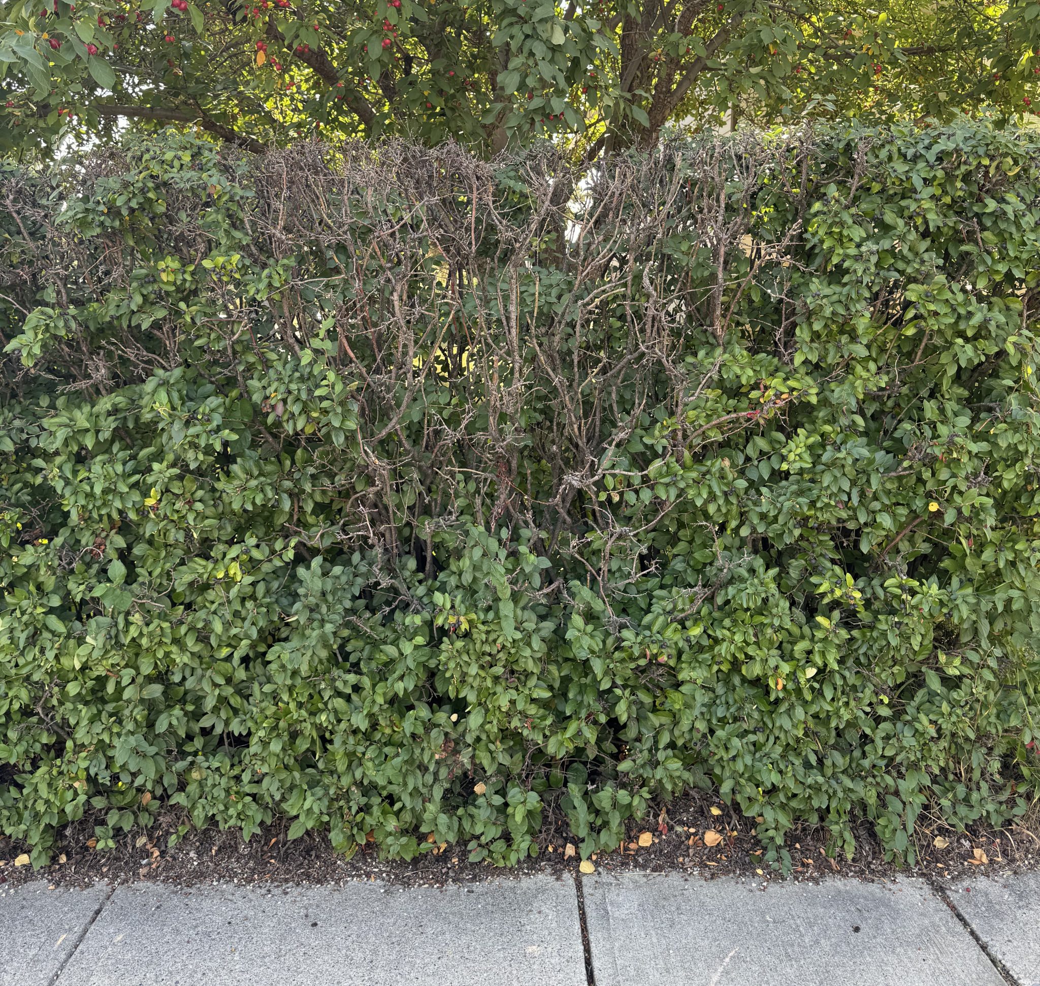 - Once dead patches are easily spotted, pruning out affected stems or cutting the entire hedge to ground level is the most effective control. Cotoneasters with healthy root systems will quickly re-grow.