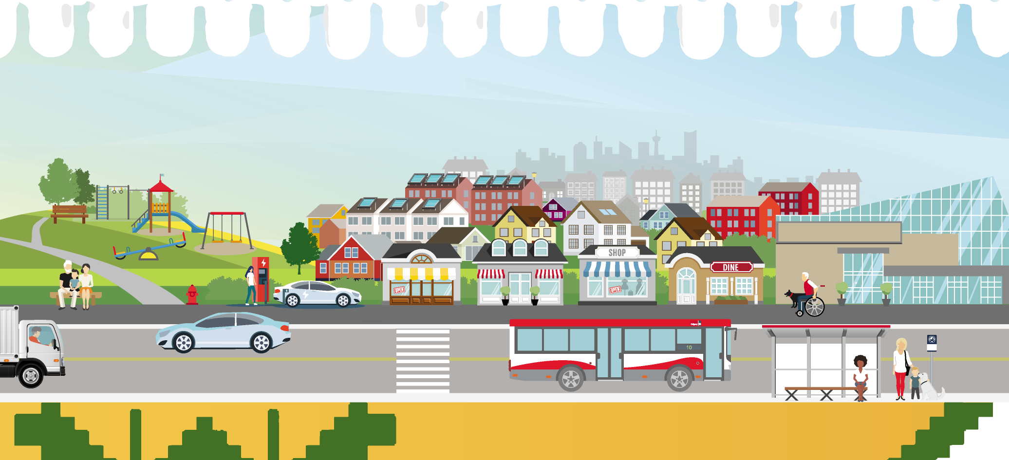 The ASP envisions a thriving, inclusive community with diverse housing, access to jobs, schools, and shops, and strong support for active lifestyles. It prioritizes the protection of natural areas like Pine Creek, while expanding green spaces through new parks and trails that promote wellness and sustainable neighbourhoods.