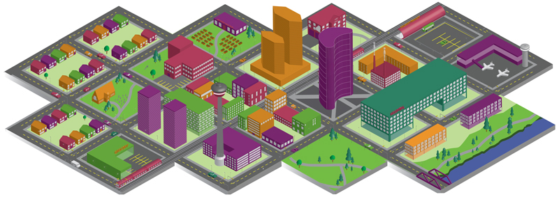 - How people move around: roads, transit, bike paths, and sidewalks.