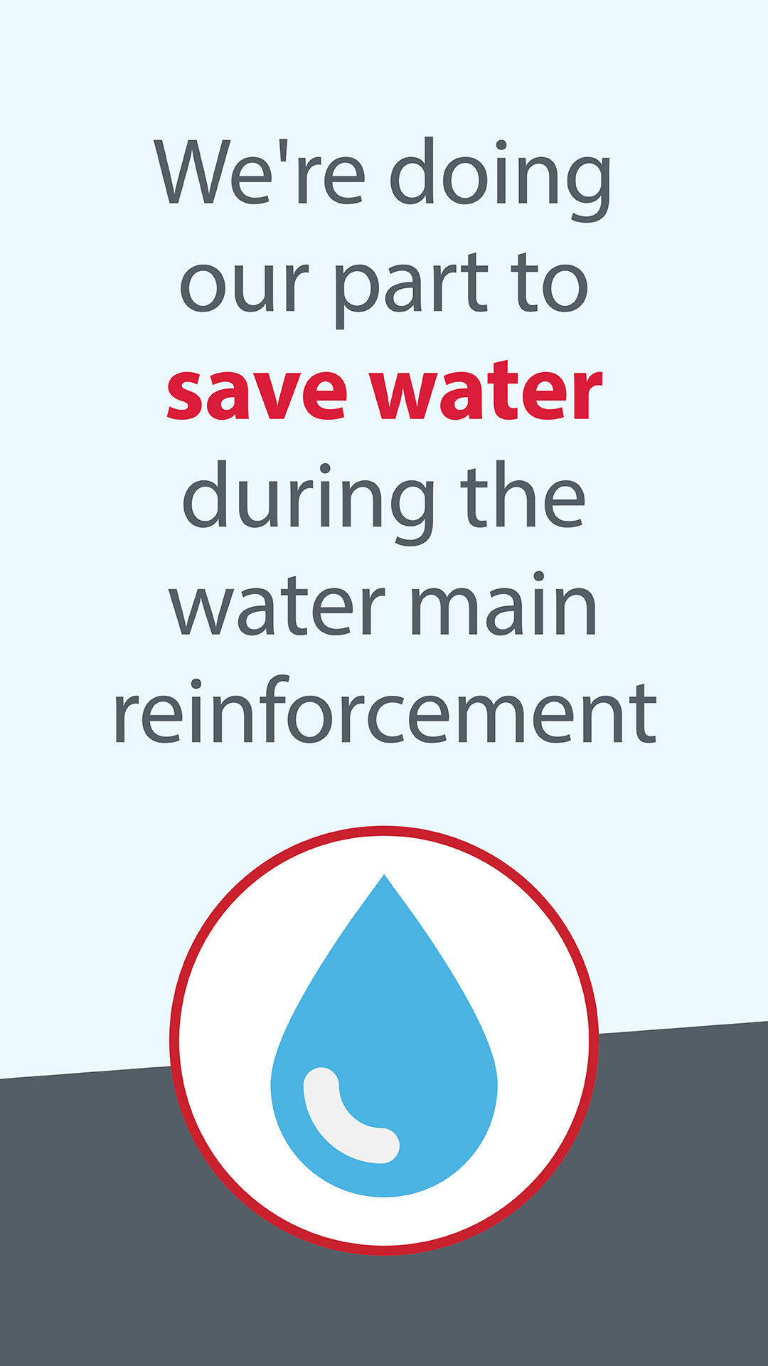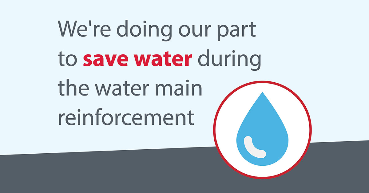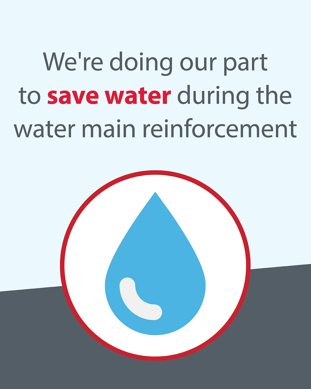 The City is taking steps to reduce water use during the reinforcement work. We will be reducing vehicle and fleet washing, and having employees work from home when possible, to reduce the need for daily showers and flushes during the work day.