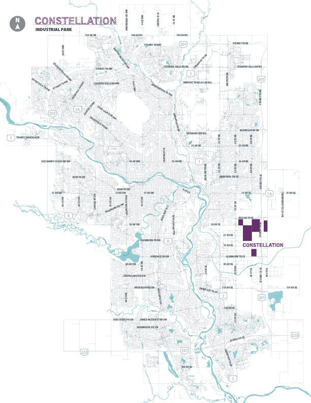 Constellation is a 600-acre industrial park located in the heart of Calgary’s southeast logistics corridor and is the latest addition to The City of Calgary’s industrial land development program.