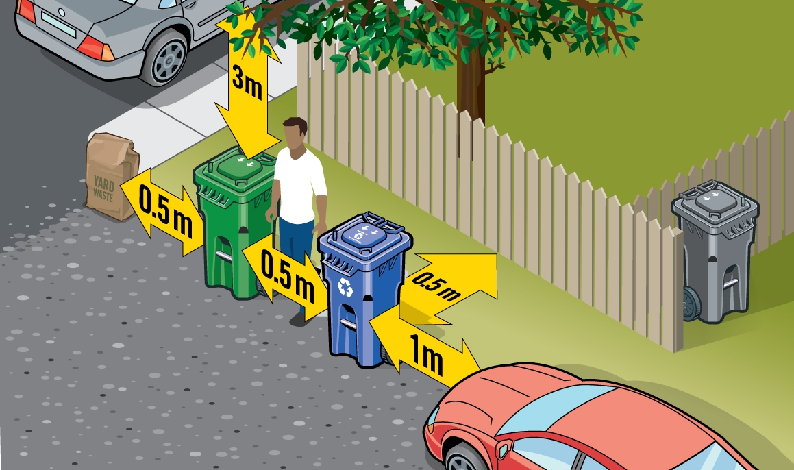 - Back lane: Place cart wheels with enough space to walk between your cart and your back hedge, garage or fence.