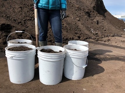 Five 20 litre (five gallon) buckets filled with compost (approximate size 12" x 15")