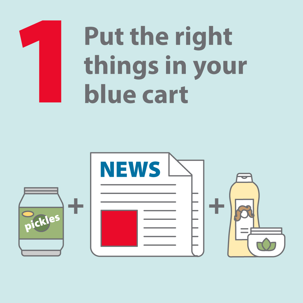 The recyclables you put in your blue cart get turned into new products that you’ll find at the grocery store, at the mall, online shopping and other retailers.